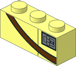 parts/3622pz1.dat - Brick 1 x 3 with Reddish Brown Strap and Silver Badge Pattern