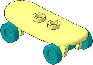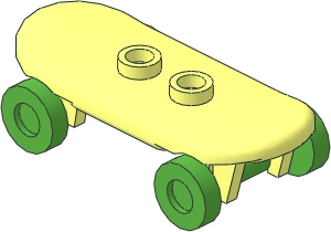 parts/42511c02.dat - Minifig Skateboard with Yellow Wheels (Complete)
