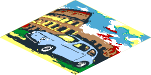 parts/6372023g.dat - Sticker 5.8 x 5.8 with Bright Light Blue FIAT 500 and Colosseum Painting