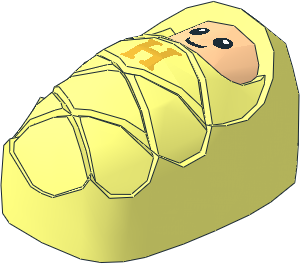 parts/24067p02.dat - Minifig Bundled Baby with Stud Holder on Back with Light Nougat Smiling Face, Small Eyes and Gold Capital Letter H Pattern
