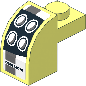 parts/6091dy0.dat - Brick 2 x 1 x 1.333 with Curved Top with Headlamp and Dark Grey Stripes on White Background Right Sticker