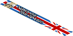 parts/3008d0t.dat - Brick 1 x 8 with Big Ben Tower and White "NOW'S THE TIME TO VISIT" on United Kingdom Flag Background Sticker