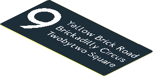 parts/60602d02.dat - Glass for Window 1 x 2 x 3 with White "9", "Yellow Brick Road", "Brickadilly Circus" and "Twobytwo Square" on Black Background Sticker