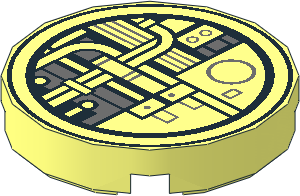 parts/14769pty.dat - Tile 2 x 2 Round with Metallic Silver "Y" on Black Background Pattern