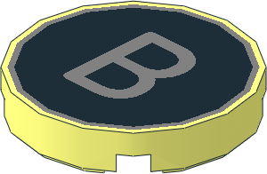 parts/14769ptb.dat - Tile 2 x 2 Round with Metallic Silver "B" on Black Background Pattern