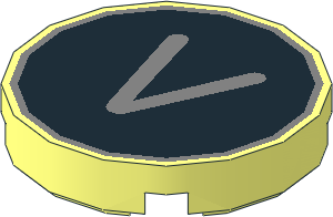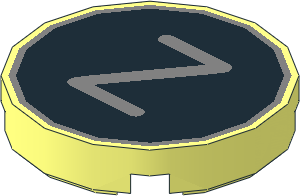parts/14769ptv.dat - Tile 2 x 2 Round with Metallic Silver "V" on Black Background Pattern
