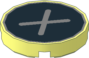 parts/18603c02p09.dat - Brick 4 x 4 x 0.667 Round with RFID Tag and 2 Studs with Black "Aperture" Pattern