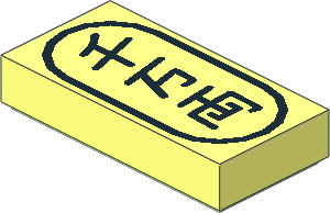 parts/3069bp1d.dat - Tile 1 x 2 with Black Japanese Logogramm (10 million ryo) Pattern