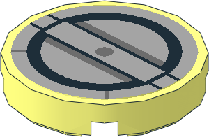 parts/18603c02p0g.dat - Brick 4 x 4 x 0.667 Round with RFID Tag and 2 Studs with Circuits and 8-Bit Shooter Pattern