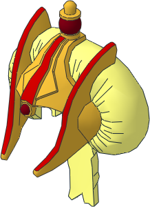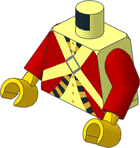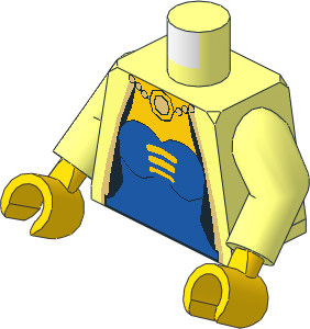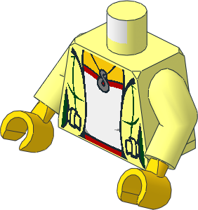 parts/76382p4p.dat - Minifig Torso with Arms and Hands with White Jesters Collar, Belt and Lion Head on Buckle Pattern