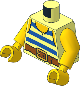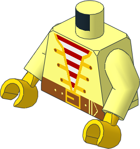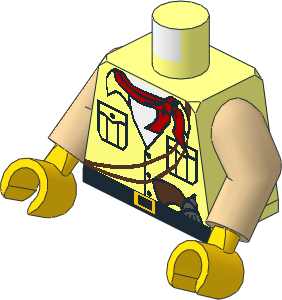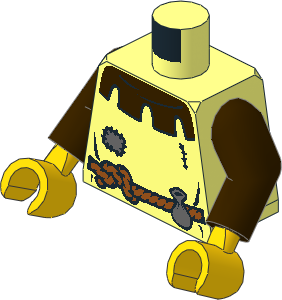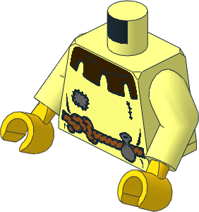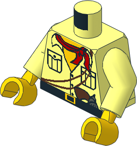 parts/84638pay.dat - Minifig Torso with Arms, Right Hand and Left Hook Hand with White Scarf and Brown Belt Pattern