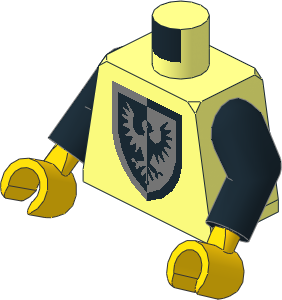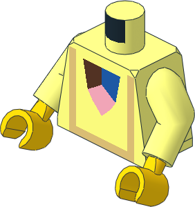 parts/76382p4s.dat - Minifig Torso with Arms and Hands with Tri-Coloured Shield and Gold Trim Pattern