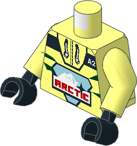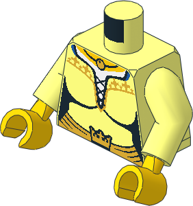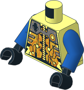 parts/76382p6e.dat - Minifig Torso with Arms and Hands with Yellow Futuron Pattern