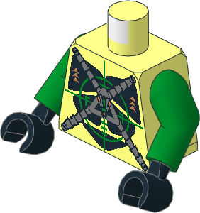 parts/76382p6u.dat - Minifig Torso with Arms and Hands with UFO Alien Triangular Insignia Pattern