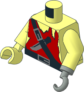 parts/84638p3a.dat - Minifig Torso with Arms, Right Hand and Left Hook Hand with Pirate Ragged Shirt and Dagger Pattern