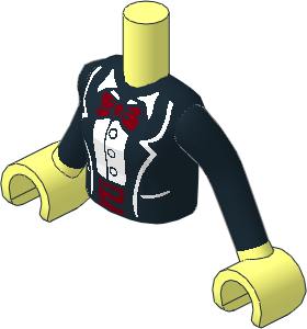 parts/76382pa1.dat - Minifig Torso with Arms and Hands with Suspenders and Red Bowtie Pattern