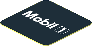 parts/85080dy2.dat - Brick 2 x 2 Corner Round w Stud Notch and Reinforced Underside with White Mobil1 Logo on Black Background Right Sticker