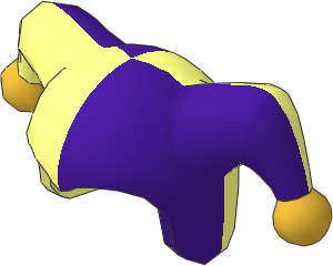 parts/62537p05.dat - Minifig Jester's Cap with Medium Lilac Half and Metallic Gold Poms Pattern