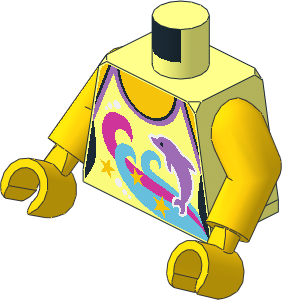 parts/92456p0l.dat - Figure Friends Girl Torso with Arms with White Sleeveless One Strap Top with Metallic Silver Dots and Magenta Star Pattern