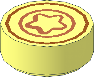 parts/98138p37.dat - Tile 1 x 1 Round with Dark Orange and Medium Nougat Star and Concentric Circles Pattern
