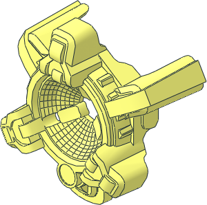 parts/57360.dat - Hinge Arm Locking with Dual Finger with 7 Fingers and Semi-Reduced Axlehole without Slots