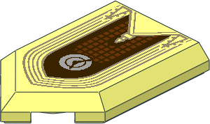 parts/22385p03.dat - Tile 3 x 2 with Angled End with Dark Tan Arches and Spires, Clock and Window with Lattice Pattern