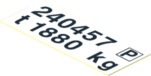 parts/820673d.dat - Sticker 0.8 x 1.9 with "240457 P" and "t 1880 kg" on White Background