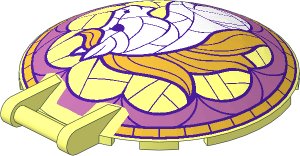 parts/18675p02.dat - Dish 6 x 6 Inverted - No Studs with Handle White Horse with Metallic Gold Mane and Metallic Pink Border Pattern