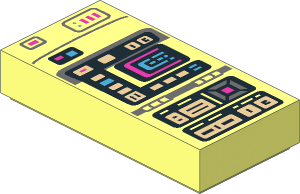 parts/3069bp64.dat - Tile 1 x 2 with Smartphone with Gold Card, Bright Light Blue Background, Dark Blue Outline pattern