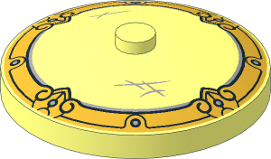 parts/3960p0j.dat - Dish 4 x 4 Inverted with Light Bluish Grey Scratches and Metallic Gold Decorative Border Pattern